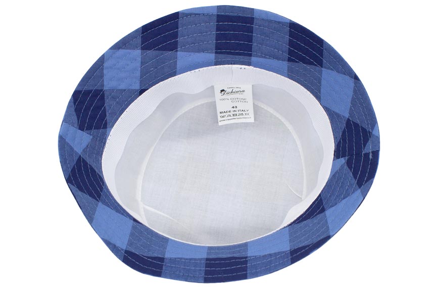 Realizzato in morbido cotone leggero, il cappello pescatore bimbo a quadri azzurro e blu è pensato per offrire freschezza e comfort nelle giornate più calde.